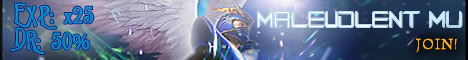 Join New Malevolent MU Server! One of the Newest and fast growing servers online! 24/7online, 99% Uptime! STATUS: EXP: x25 DROP RATE: 50%!